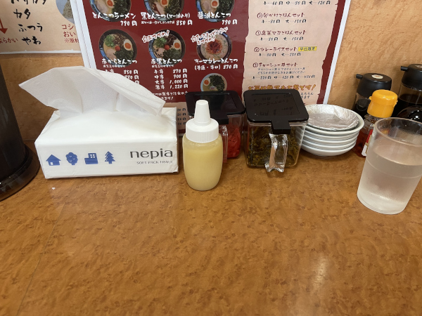 「紅ショウガ」や「高菜」「ニンニク」も各席にあるので、もちろん