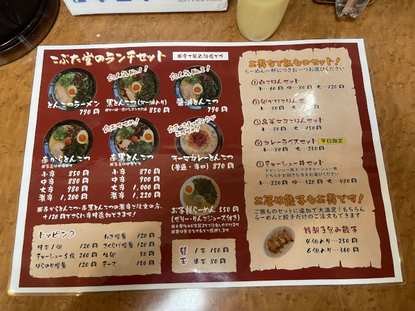 今日はガッツリ食べようと決めてたので、お目当ての「黒とんこつらーめん」に、
