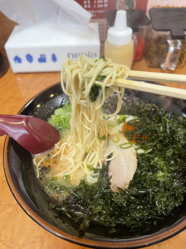 麺を啜ると、磯の香りとスッキリ系の豚骨スープに、