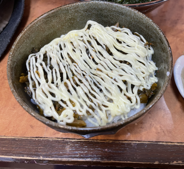 セットで頼んだ「高菜マヨご飯」もピリ辛の高菜とマヨネーズが